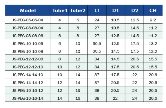 JS-PEG T型正变径三通 - 产品规格