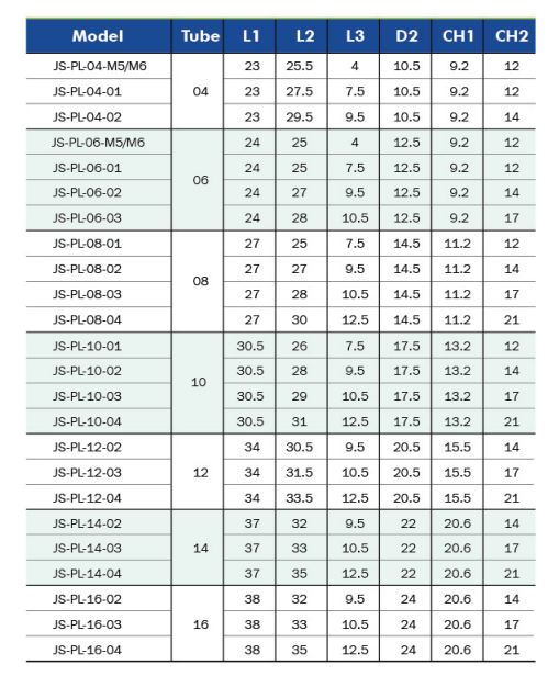 | 11 | JS6-PL8-03 | 8 | R3/8 | 16.8 | 20.4 | 22.8 | 10.5 | 17 | 18.8 | 14 |